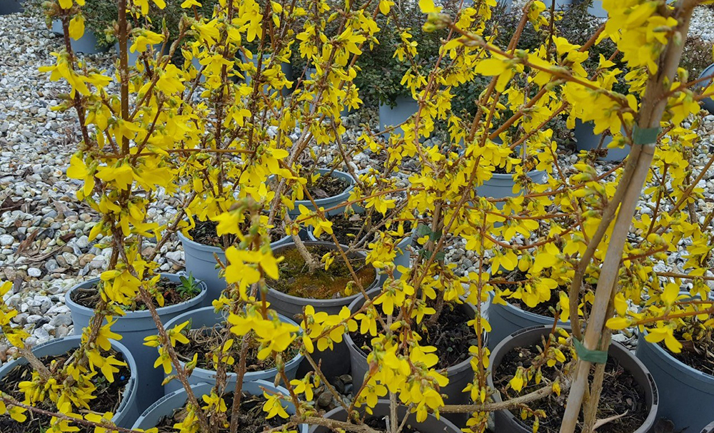Forsythia is a deciduous shrub celebrated for its vibrant yellow flowers that herald the arrival of spring, often blooming before the leaves emerge. Its arching branches create a striking display in borders, hedges, or as a specimen plant, bringing early-season colour to the garden. Forsythia is hardy, fast-growing, and low-maintenance, thriving in full sun and well-drained soil. Pruning after flowering encourages healthy growth and abundant blooms, making it a reliable and cheerful addition to any landscape.