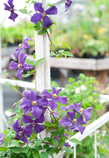 - Clematis Multi Blue: This climbing plant produces large, vibrant blue flowers with double petals, making it a showstopper on trellises, walls, and pergolas.