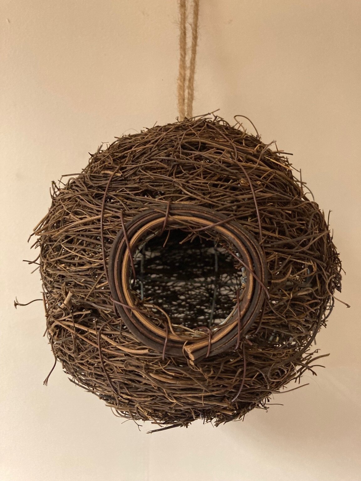 A rustic styled rattan nester that simply hangs from a tree. Designed to attract a variety of birds such as members of the Tit family and Tree Sparrows. Approx 15cm in diameter