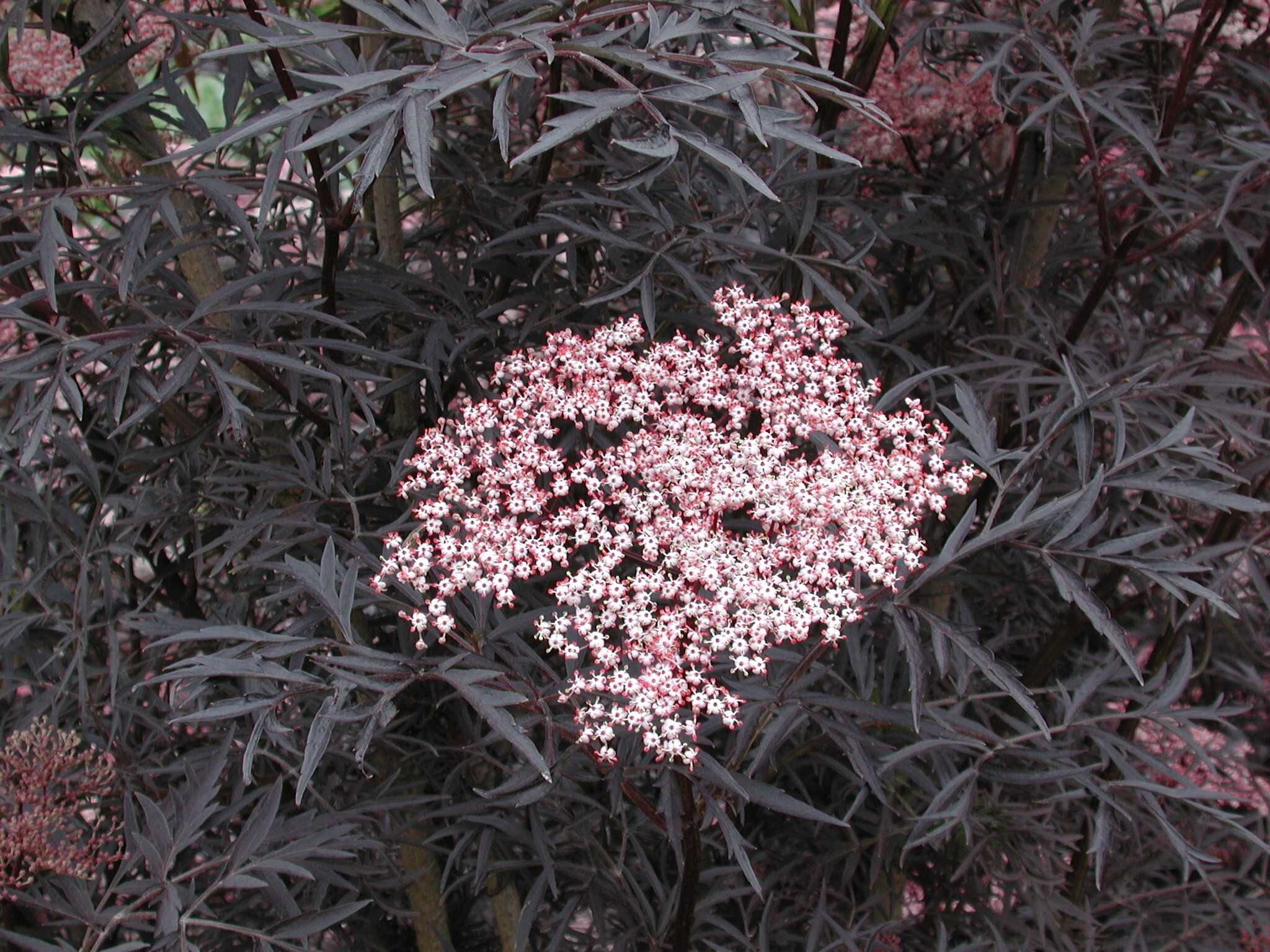 Foliage remains dark and lacy, offering a bold, elegant texture. Flowers may be followed by dark red to black elderberries (if pollinated), which are attractive to birds and can be used for culinary purposes (cooked only).