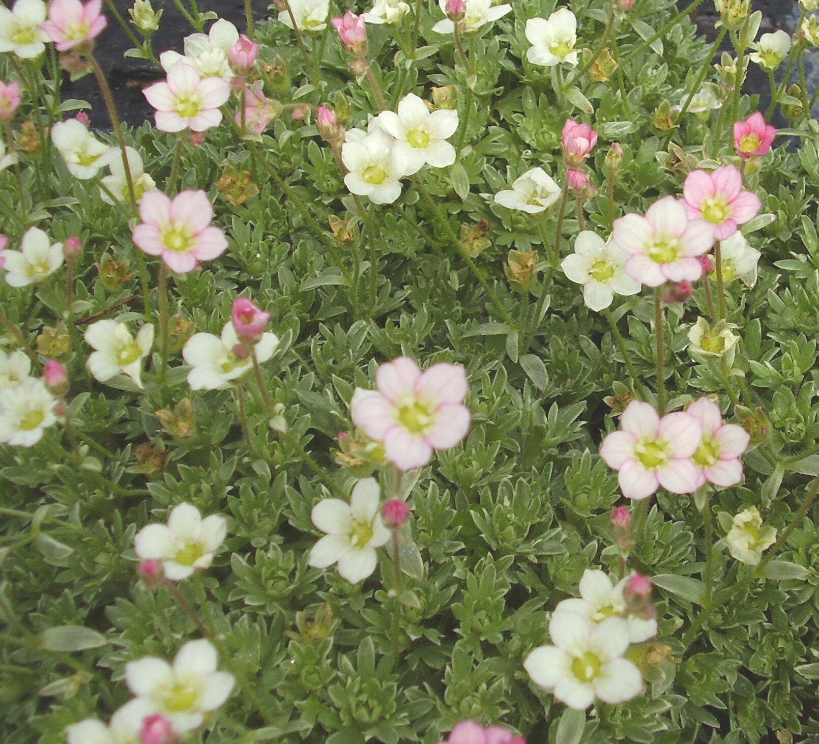 Masses of starry, pink/cream flowers, on variegated mossy foliage, this low growing, spreading plant is ideal for rockeries borders and lining gravel paths. Flowering early to late Spring.