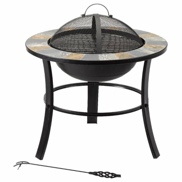 Keep the cold at bay with this eye-catching contemporary firepit. Striking centre piece for any outside space.Hard wearing steel with stylish slate mosaic finish. Three leg design provides stability and increases airflow for heat dissipation.
