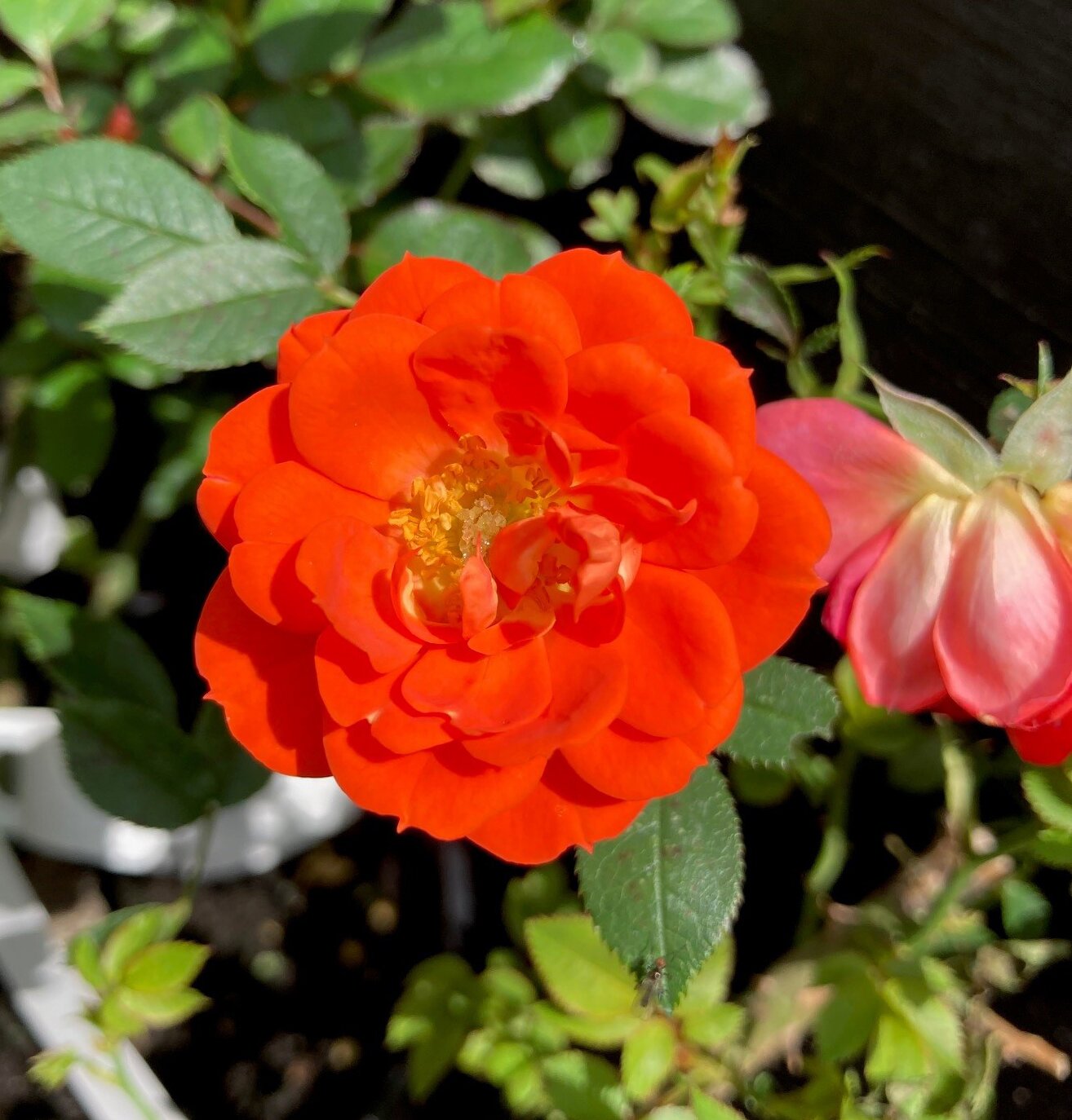 A cluster flowering miniature rose. Cluster of the brightest vermillion blooms are produced repeatedly throughout the summer into the autumn. Growth is compact and cushion like. Foliage is a dark green providing a lovely back drop to the blooms. Hardy. Good disease resistance. Grows to 35cm in height.