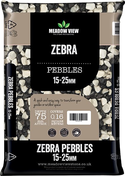 Zebra Pebbles are a contrasting mix of black and white rounded pebbles that provide an attractive contemporary finish. This unique product is a blend that will work well as an edging for paving and patios.